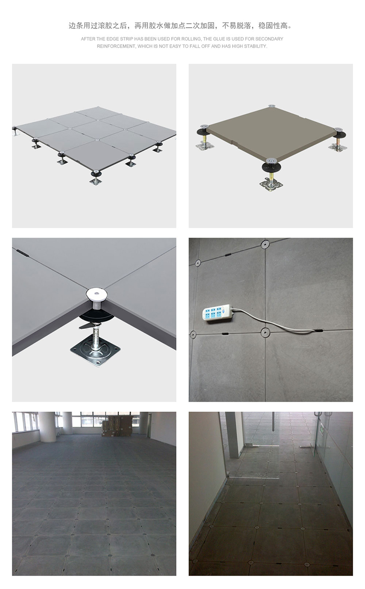 無(wú)機(jī)質(zhì)網(wǎng)絡(luò)地板是由硅酸鹽、無(wú)機(jī)纖維、礦物纖維、石英砂等材料經(jīng)過高壓一次成型的環(huán)保地板,每塊地板自帶穿線孔。地板四角鍍鋅底座支撐,不帶橫梁系統(tǒng)。每塊地板四角有90度圓弧,四塊板組合而成后形成一個(gè)圓,有一個(gè)鐵制螺母壓角固定。