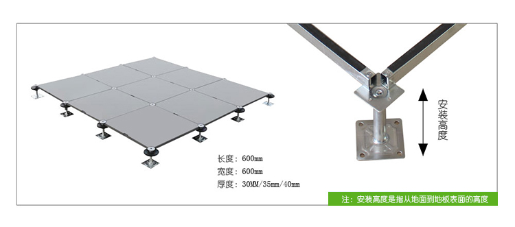 地板鋪設(shè)高度:地面至地板面的總鋪高為40mm-350mm