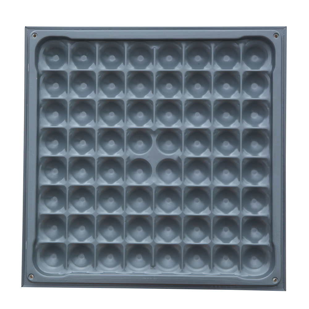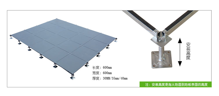 OA600網(wǎng)絡架空地板采用鋼板經(jīng)拉伸成型、點焊、外表經(jīng)防銹處理后進行靜電粉末噴涂處理,內腔填充發(fā)泡水泥,四角帶有角鎖孔。支架為冷軋帶鋼鋼板及鑄鋁合金鋁頭組成,可調節(jié)升降高度。由于智能化樓宇配線復雜,功能齊全,故出線口較多。